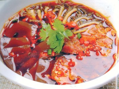 黔西南著名小吃,攤館必備。在糯米飯內放適量本縣特產的四季豆米,加酥肉片、醬油、醋、辣椒等佐料,摻入雞湯或豬腳湯,煮得半稀半爛連湯帶水一大碗,味道鮮美異常。3元一碗。