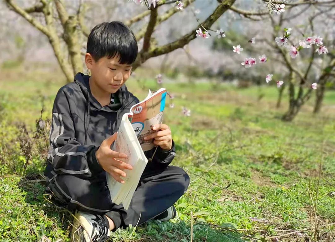 “晉太元中,武陵人捕魚為業(yè)。緣溪行,忘路之遠(yuǎn)近……”花香伴書聲,林間變“課堂”。和煦的春風(fēng)吹紅了桃林,吹來了希望,江西坡中學(xué)的學(xué)生,手捧書本徜徉在樹林花叢間,遨游知識的海洋,感受著《桃花源記》里“芳草鮮美,落英繽紛”的寧靜美好。