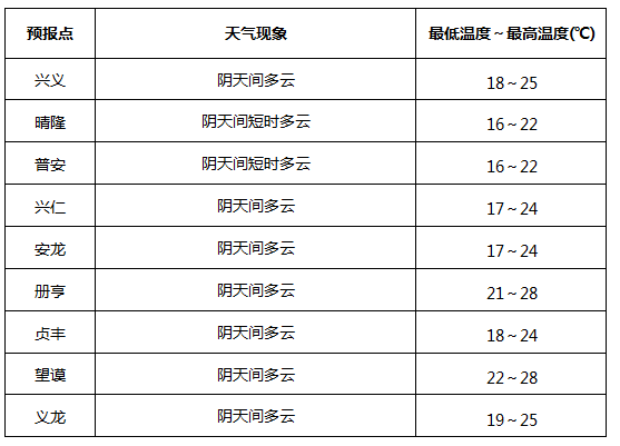 - 黔西南州未來72小時、各縣市區(qū)未來24小時天氣預(yù)報 2021-05-28 05:11:18