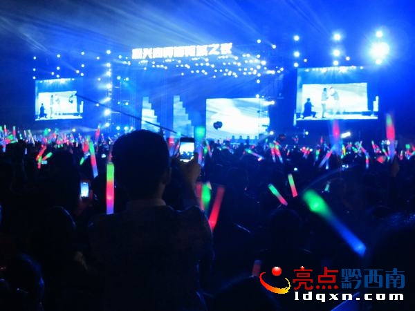 在晚會現場,這場精彩紛呈的視聽盛宴,無論燈光、音響和舞美效果,達到較高境致。這次中國好聲音群星學員演唱會,是黔西南近十年來,最具規模與激情的群星演唱會。浙江衛視著名主持人伊一和陳歡作為本次演唱會的主持人,默契搭檔,完美配合,機智幽默詼諧的風格,讓觀眾大開眼界。晚會持續到22:30結束。(雷紹洪 本網江源 魏天攝影報道)