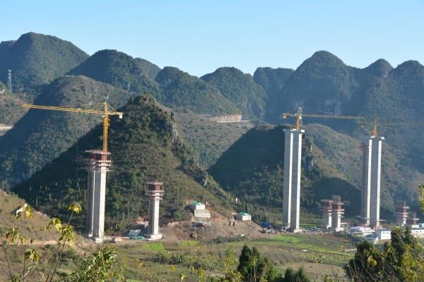 1月10日,記者沿建設中的興義環城高速公路走了一圈,所到之處,挖機、鏟車、塔吊、吊車、罐車和運送砂石泥土的卡車等施工機械,來來往往,爭先恐后,一派繁忙景象。在下五屯辦事處壩佑村、萬峰林辦事處甕本村、敬南鎮十里坪,遠遠看去,綿延的大山上,被攔腰劃出的一條條直線,正在向左右延伸。在景峰大道與景湖大道連接處,兩座挺拔的山峰已被削去大半,山頂的挖機和鏟車,仍在揮臂作業。多座橋梁的橋礅,已經或即將封頂;多座隧道已經貫通或正在掘進。在總工程師劉政等人的帶領下,記者來到峰林特大橋南岸工地,但見陡峭的崖壁上,已經聳立起多座巨大的橋礅,工人們正在橋礅、懸索鉚礅等現場施工,鑿巖機的聲音,不絕于耳,使寧靜的峽谷,平添了若干生氣,而深陷的峽谷,則使每一根礅柱都顯得無比壯觀。劉政介紹說,峰林特大橋系鋼桁懸索橋,全長1164米,最大礅高160米,不僅是整個項目的控制性工程,更是一道耀眼的風景,它的建成,將使自然風光與人文景觀融為一體,極大地提升馬嶺河峽谷景區的品位和價值。為了方便往來游客觀光賞景,他們在北岸設置了一個專門的觀景臺,游客可以把車停在清水河服務區,然后步行或乘觀光車到橋畔的平臺上,欣賞峽谷風光和大橋雄姿。