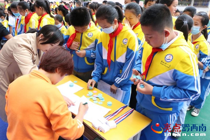 5月21日,黔西南州興義市盤江路小學2021年春季學期期中檢測暨成長幣兌換儀式在學校操場隆重舉行,該校1700余名師生參加。活動為150名優秀學生頒發獎狀和800余名學生兌換獎品。