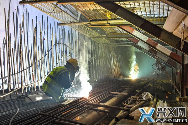 在興義市北環(huán)線馬嶺峽谷隧道內(nèi),施工工人正在澆筑臺車上來回穿梭,為二襯鋪上防水層,臺車下,焊接工人手中的焊槍正發(fā)出耀眼的光芒,將鋼筋焊接成所需要的部件,整個施工現(xiàn)場充斥著建設(shè)的轟鳴聲,一派繁忙景象。