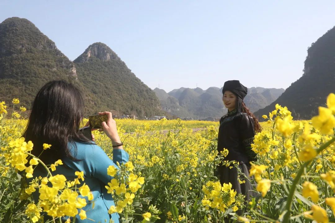 游客肖倩說:“這邊的油菜花開得很茂盛,拍起來效果很滿意。”