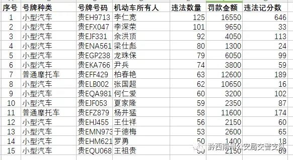 黔西南公安交警對于榜單上的“交通違法王”