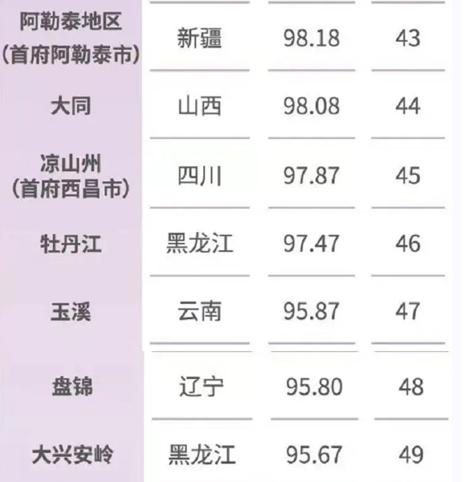 7月11日在上海發(fā)布的《2024中國候鳥式養(yǎng)老夏季棲息地適宜度指數(shù)》顯示,六盤水、呼倫貝爾、哈爾濱分列前三,第四到十名分別是:貴陽、青島、昆明、遵義、長春、煙臺、威海。其中,貴州省有六盤水市、貴陽市、遵義市、安順市、黔西南州、畢節(jié)市6個市(州)上榜,分別位列第一名、第四名、第七名、第三十六名、第三十九名、第五十四名。